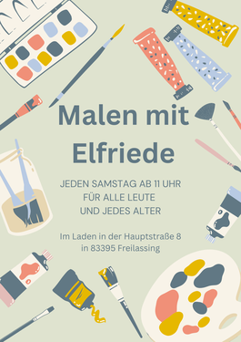 Während draußen die Fahrräder repariert wurden, lud im Laden die Freilassinger Künstlerin Elfriede Slavik zum Malen ein. Sie bietet jeden Samstag ab 11:00 Uhr kostenlose Malstunden an, bei denen Kinder, Erwachsene und Senioren herzlich willkommen sind. So konnten die Besucher den Laden mit einem reparierten Rad und einem eigenen Gemälde verlassen.